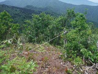 トヤの頭山山頂で昼食の予定でしたが、山頂が狭いことと日影がなく暑いので鳴倉山への途中で木陰を探して昼食。
