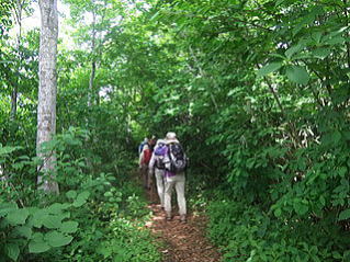 登山口の先は緑のトンネル、やったぁ〜!木陰がこんなに有り難いなんて、元気を取り戻し歩が進みます。