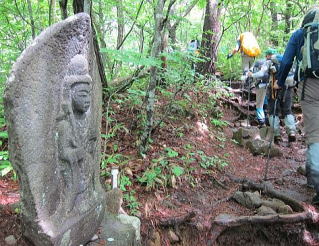 登山道脇に祀られている仏様の石像が、飯縄山が山岳信仰の霊山であることを教えてくれる。