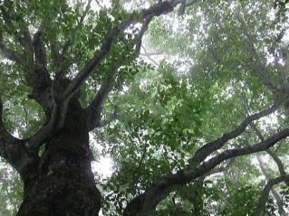 濃い緑に包まれながら立ち休憩 |