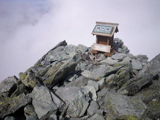 風が強く360度の展望とはいきませんが一瞬ガスが飛ばされたときにアルプスの山々が展望できました。