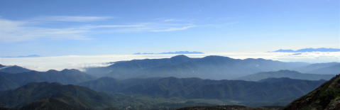 東側は白く輝く雲海で遠くに八ヶ岳連峰(右端) |