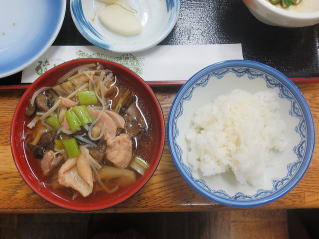夕食はビールで乾杯です。鶏肉の入ったキノコ汁は絶品でした。