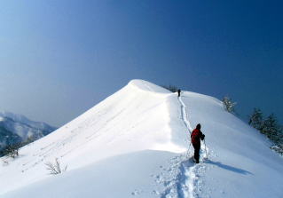 暖かい陽射しを浴びた昼食を終え下山となったが、眩しい陽射しを浴びた山並みが美しく飽きることは無かった。 |