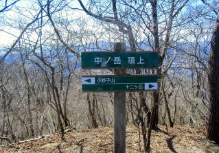 辿り着いた中ノ岳山頂は木々が展望を遮っている。