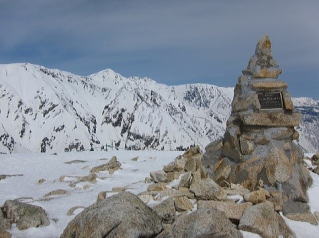 丸山ケルンの先に白馬三山を望む |