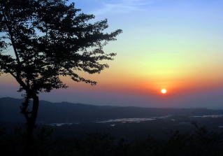 山頂からの展望は素晴らしいのだがやや霞んでいた。しかし、陽が沈むころには気温も下がり素晴らしい夕陽と山々のシルエットが美しく観ることが出来た。