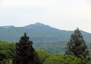 小屋に戻るときアルプス方面を見ると残雪が輝く白馬連山を見ることができた。 |