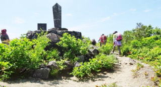 五ノ峰を後にし岩に彫ってある親子地蔵さんを眺め8合目の赤安山分岐で休憩します。 |
