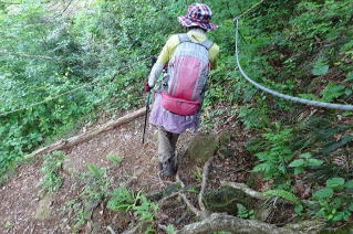 赤安山で休憩、此処より先は激下りが多くロープにつかまり慎重に下ります。