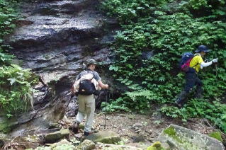 帰りもヘツリ道や沢沿いの歩きが有り滑らないように気をつけ土井の集落に着きました。