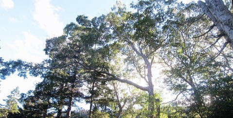 急坂を登って坪場に出ると展望が開け、景観が一気に開放的になる。