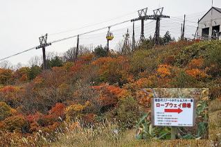 途中でスキ−場のゴンドラリフト動いているのに気がつきました、まさか磐梯山もゴンドラで登れるとは(片道切符1000円)11月9日まで運行です。