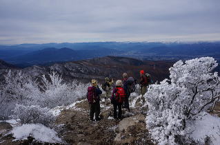 群馬県の暖かい小春日和の山歩きのつもりが、一足早く新潟の真冬より寒い気候の登山は、思いもよらない霧氷の景色の中を歩きました、こんな遭遇があるから山はやめられない「同行のメンバー」の一言(おわり) |