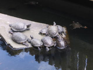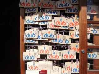 成田山別院は亀のいるお不動様で親しまれ、開祖の目が治癒したことにあずかり、「め」絵馬が多く奉納されていました。
