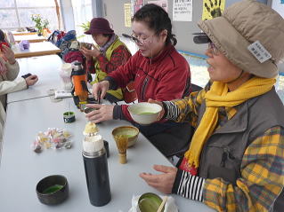 食事の後は野点のお点前や、マンサク、フクジュソウ、サンシュ、梅の花を愛でながら園内の散策などそれぞれ楽しまれたようでした。