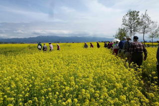 福島潟半周自然めぐりは、通常の歩きで約30分のところを花や潟の自然など説明を受けながら1時間30分でゆっくりと歩きました。