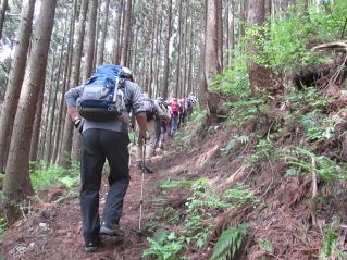 ここから蔵王堂コースへ下山。「少し急勾配ですのでゆっくり行きましょう」とリーダー。
