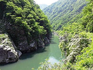 一般的に川沿いの道は、上流から下流に向って下りになるのですが、この遊歩道は下流の丸山公園から上流の鷹の巣温泉に向かって下降気味になっています。したがって、丸山公園から鷹の巣温泉に向って歩きました。
