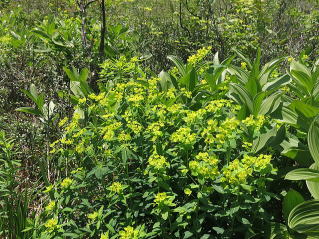 近縁のナツトウダイに比べ,葉の枚数が多い。