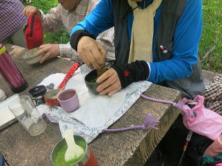 【青虫の 這い蟻も来し 野点かな】 T・K |