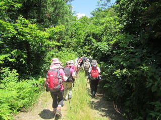 その後稜線に入りリーダーより薬師スキー場リフト、昼食場所の城山の説明がありました。