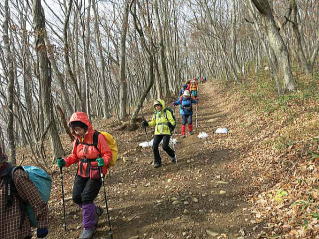 既に葉が落ち切った雑木林、カサコソと気持よく落葉を踏みながらの歩き、皆さんの話も弾みます。