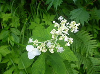 ヤマアジサイ、トリアシショウマ、メタカラコウ、キブシの実、オニシモツケ、ニワトコの実、マタタビ、シモツケソウ、オクヤマガラシ、ノビネチドリ、