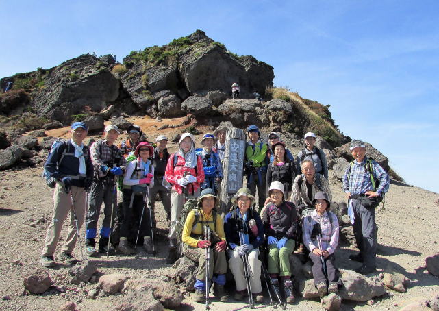 安達太良山の最高峰に立ち、智恵子抄の青い空を体験、それにしてもこんなに人の多い山は久々のことでした。 |