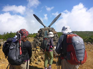 山頂標柱の前で記念写真 |