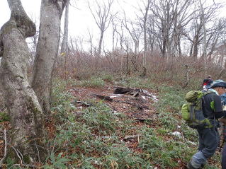 12:35 登りきると避難小屋跡に到着。ちょっとした広場になっています。