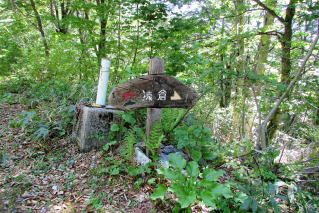 登り切ったところが林道との出会いでここからはしばらく緩やかな林道歩きとなる。 |