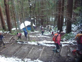 山頂直下は登ってくる楽山会メンバーと交差 |
