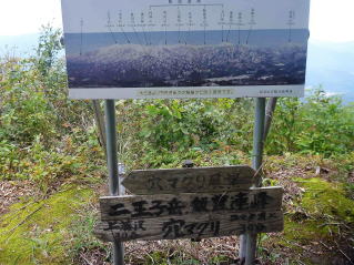 晴れた日には日本海沿いの北方向に朝日連峰、その左手の奥に鳥海山も見られる。更に、北東に目を移すと、北股岳、飯豊山,御西岳、大日岳の飯豊連峰が、手前には二王子岳が迫ってくる。すぐ南方の眼前には、金鉢山を始め五頭山に続く山々も連なって見えてくる。西方には、越後平野、新潟市、佐渡島も水平線に浮かんで見える。素晴らしい眺望に恵まれている。しばらく、休憩して眺望を楽しむ。 |