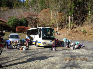 まだ暗いはっきりしない天気の中、予定より10分程早く4時50分出発。バスの中でリーダーさんからコース変更の説明。周遊の予定をピストンにするとの事、下山予定の女道もみじコースは道が荒れていて大人数では時間が掛かるため、時間短縮の為靴も赤城サービスエリアで履き替えた。