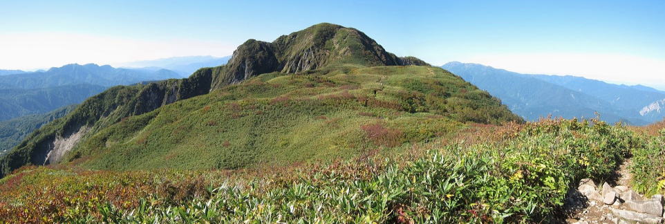 沢を過ぎると傾斜がきつくなり、やがて南東側に黒姫山、高妻山、戸隠連峰が現れる。