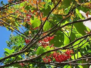 僅かな木々の色づきとナナカマドの赤い実に秋を感じながら高度を上げる。 |