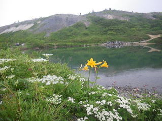 チングルマやニッコウキスゲは終わっていた、ヤナギラン、クルマユリ、シモツケ、トウキ、ギボウシ、アズマギク、キンコウカ、ワタスゲ、トリアシショウマ、クガイソウ、ジャコウソウ、ナデシコ、ワレモッコウ、オヤマソバ、ウツボグサ、等々多くの花々を見ることができた。 |
