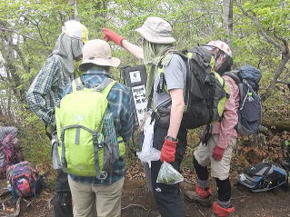途中で昼食休憩を挟み、野沢温泉方面の山容を眺めブナ林の群生林を歩き小沢峠分岐からは右手の沢沿いにブナの巨木を見ながらスキー場のゲレンデに到着した。