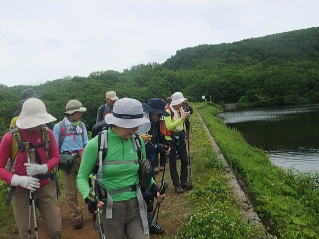 八方台登山口駐車場には、磐梯山の登山口でもあり既に多くの車が止まっている。各自準備し、磐梯山登山口と反対にあるブナ林の中の登山道を進む。