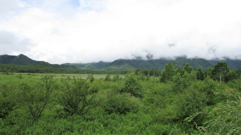 幸いにも雨は上がっていたが、遠望はきかなかった。素晴らしい展望で戦場ヶ原の雄大さを垣間見た。 |