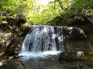 中滝から2qほど、恵みの森の入口から4qほどのところに魚止の滝があります。