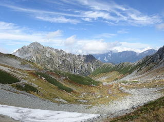 | 中央が白馬・天狗の頭・キレットと続く北アルプス |