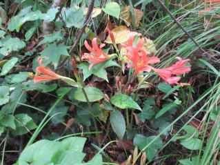 やがて見上げる斜面にキツネノカミソリの群落が、周囲の緑に南風際立っている。