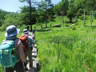 大人数のため、皆様の体調に合わせ①入笠山登山②お花畑散策③山野草公園散策の三つのグループに分かれて出発です。