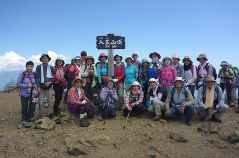 広場のような山頂は、風があり暑くもなく快適。360°の展望です。富士山も見え、山座同定盤で山々の確認を楽しみました。 |