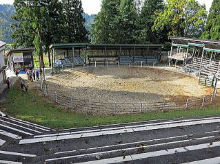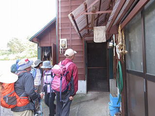 今日は小栗山闘牛場からスタートして、闘牛の横綱牛が暮らす家の前を通り観音堂へ向かいました。 |