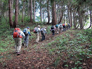 金倉山へ畑地を抜けて、急なヤブ道に入るとあっちこっちに落ち胡桃を拾いながらの登りとなりました。