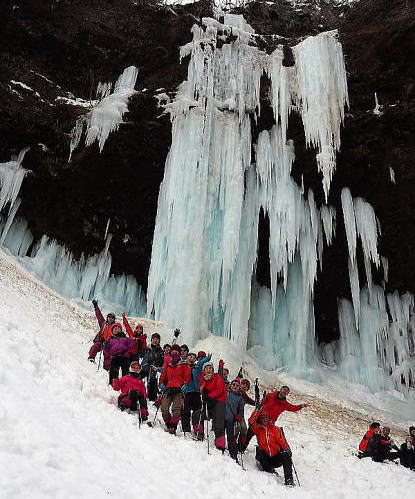 2日目は仙人沢氷瀑を観に行きました。スキ-班は別行動です。