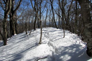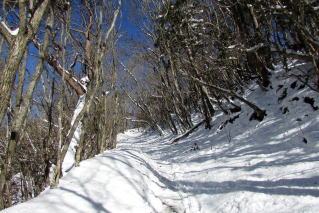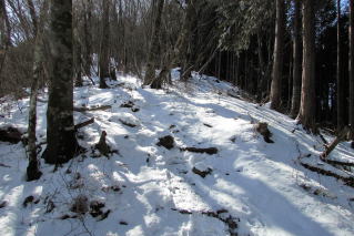 阿難坂からは急な尾根筋を登っていく、ところどころかなり雪深いところもありやや難儀。